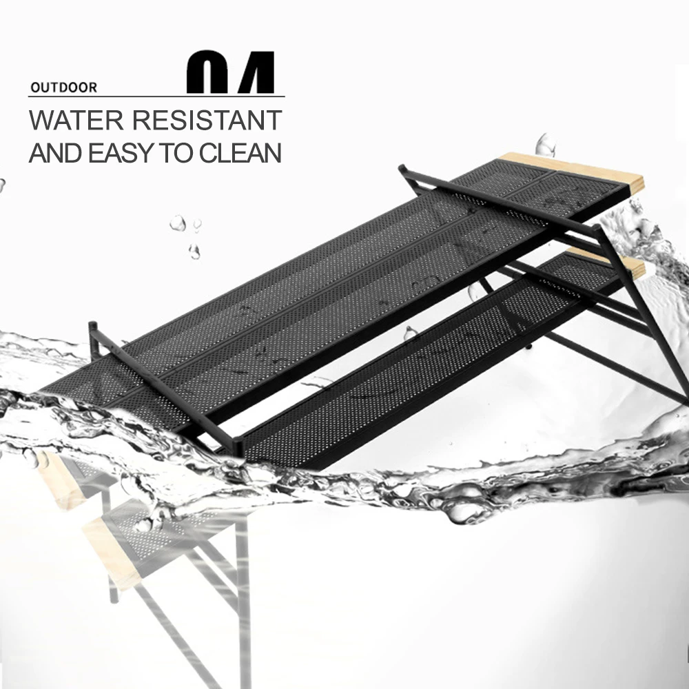 Portable and Multiple Function BBQ Table is an outdoor jointing barbecue table. It is foldable and portable so it is convenience to bring along to outdoor activities. It is made from iron and solid wood edge. It is also waterproof and easy to clean.