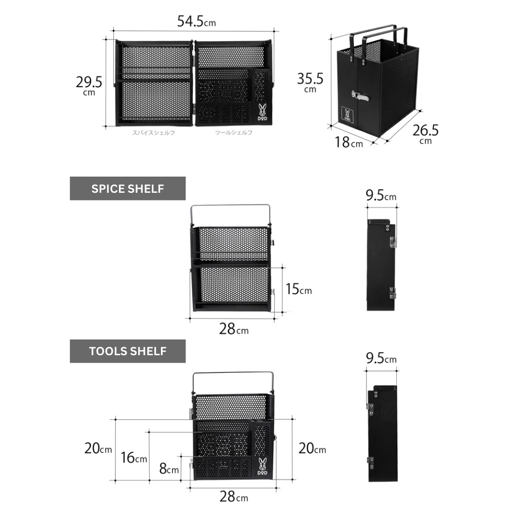 - Size: Open size: (approx.) W54.5 x D9.5 x H29.5 cm | (with handle up: (approx.) W54.5 x D9.5 x H35.5 cm) | Spice shelf alone: (approx.) W28 x D9 .5 x H29.5cm