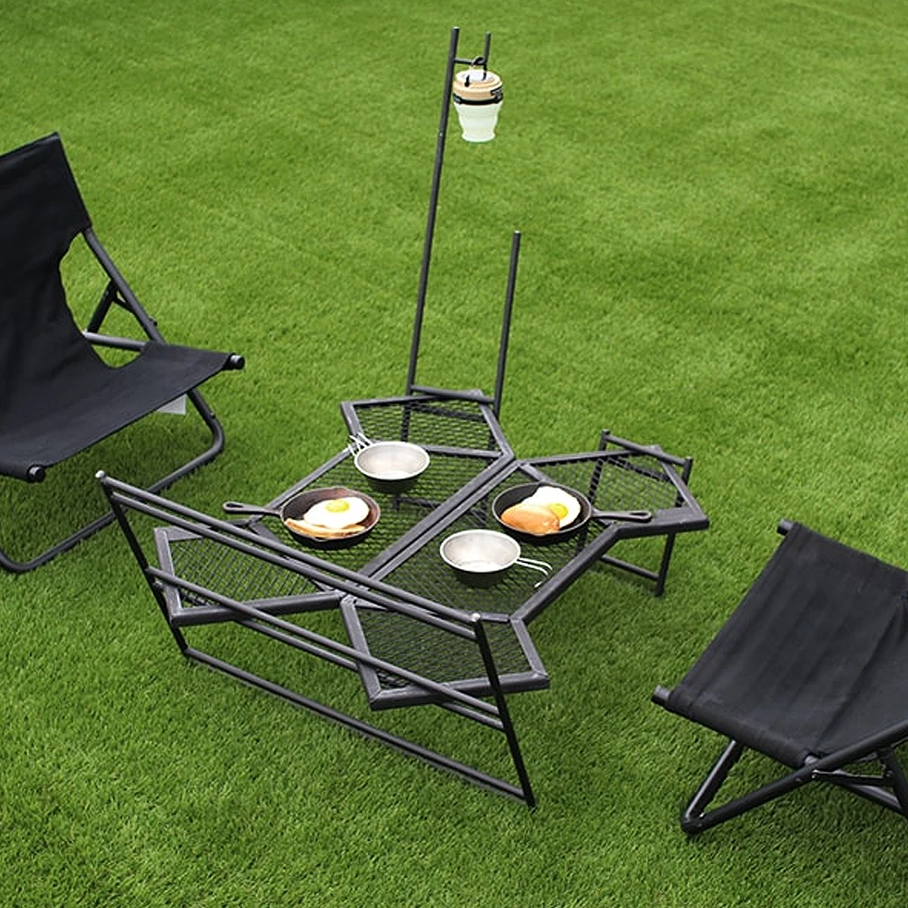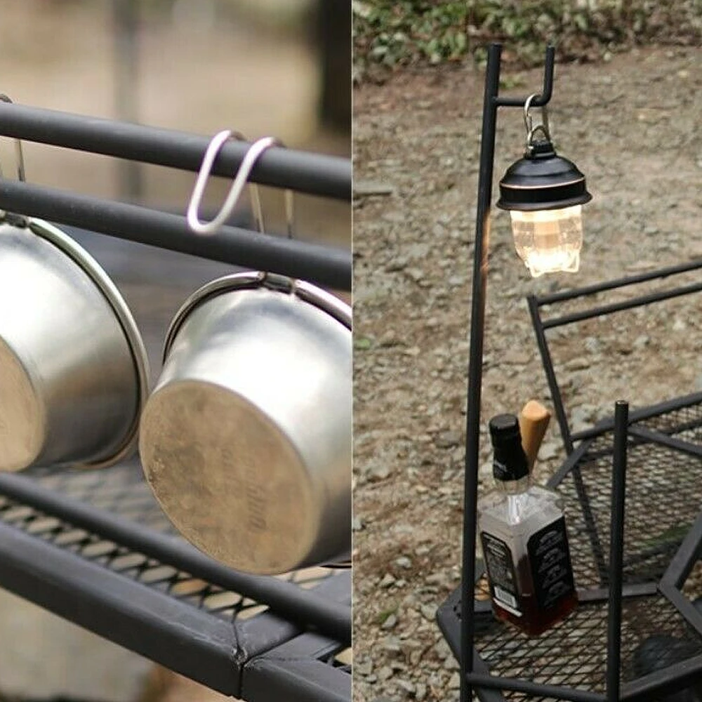It’s neither light nor compact. Still, I made a table for an exciting solo camper. It is a cockpit shape that allows you to secure a private space by consolidating necessary items around you.
