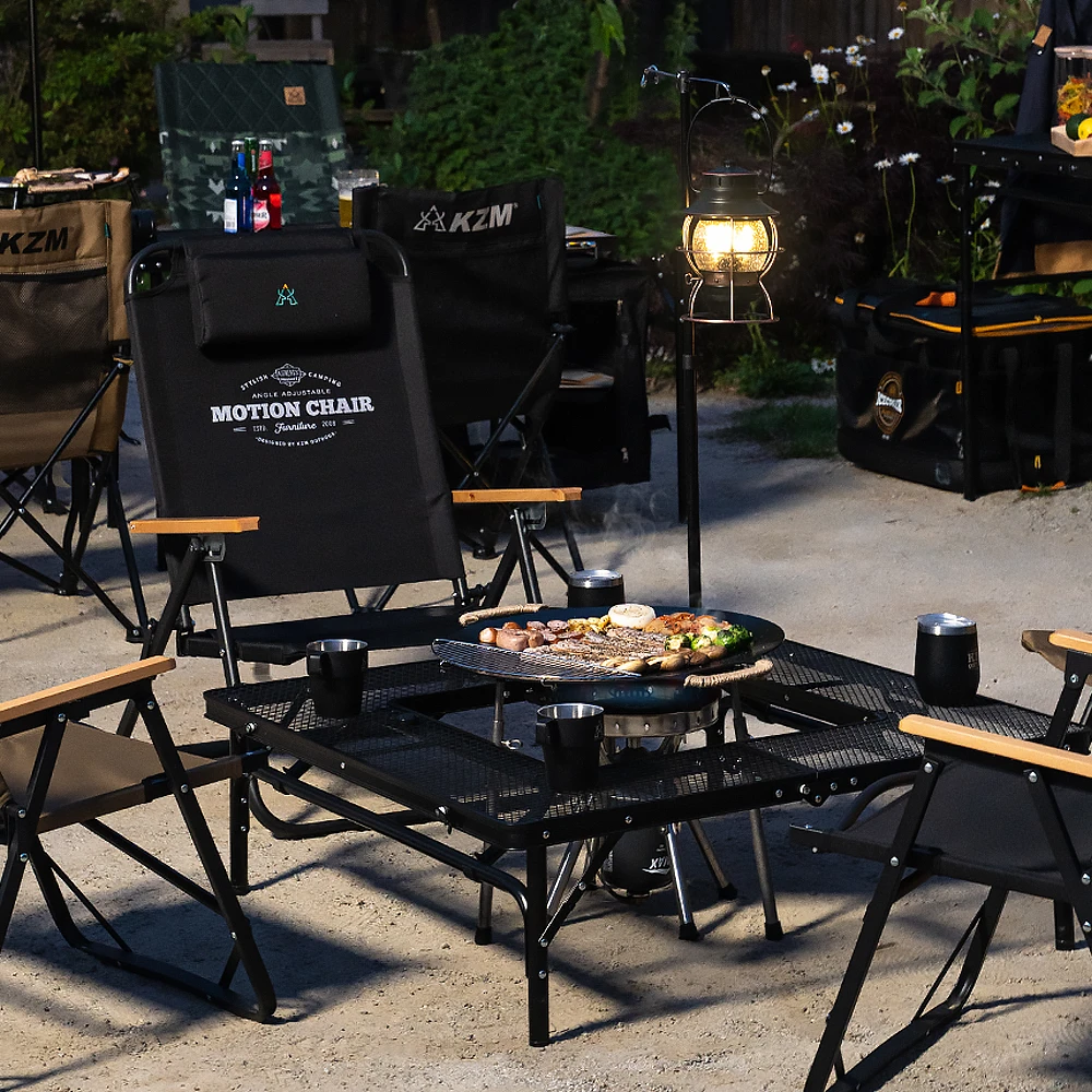The top is made of iron mesh, so it is lighter and stronger than the MDF table. Manufactured from a strong material in column , the hot dish can be placed directly on the table to use . The table is easy to clean, and can be used and stored regardless of weather, because it is resistant to moisture. It’s a table where of you can sit around and enjoy the center stove.