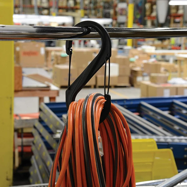 The iconic S-Biner design allows for quick and easy mounting using its unique double lock design.ย This durable plastic body with stainless steel doors is large enough to hold, secure, and connect larger items like extension cords, sports equipment, hoses, and more. Made of strong, lightweight, and durable plastic, it holds, secures, and connects big things, awkward things, and heavy things.ย Great for organizing those space pigs in your garage (bikes, heavy tools, sports equipment, garden hoses, extension cords).ย It’s also perfect for hanging heavier camping gear, ladder paint cans, and basically any other big job you want to get a handle on (large).