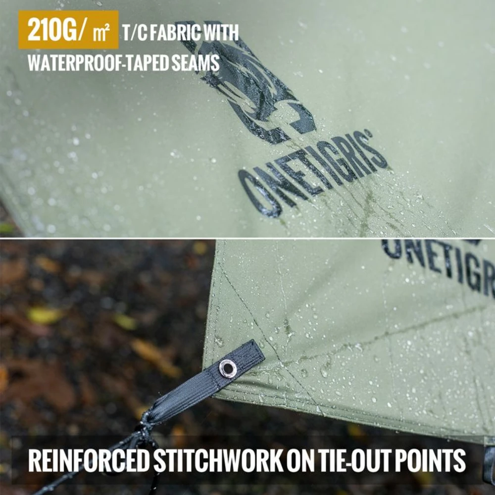 - What’s come in the set: 1x OneTigris Aegis T/C tarp, 12x Guy-line, 12x Tent peg, 1x Tent peg sack & carry bag