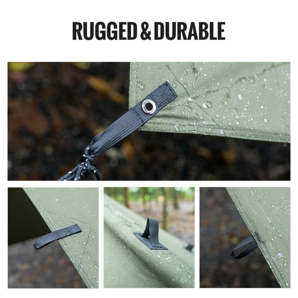 - 9.2 ft by 14.4ft when set up, ideal for 1-2 campers for use as a tarp shelter, rain shield, sun canopy, or hammock tarp, with 400mm waterproof rating