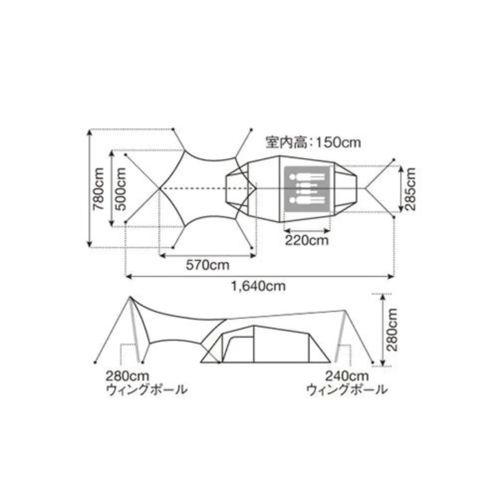 โข Tarp: 210D Polyester Ox, PU Coating 1,800mm Teflon Processing, UV Processing