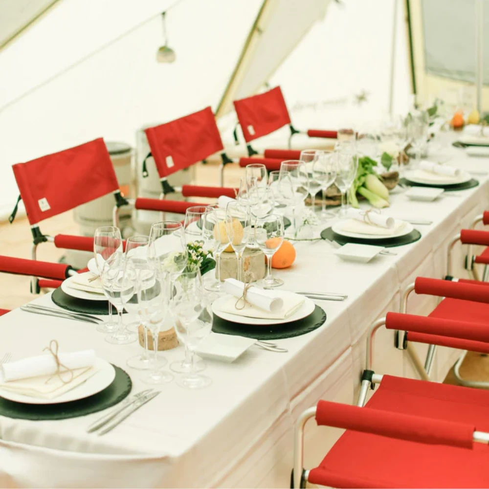 Constructed of durable aluminium tubing and cast zinc joints, the Red Folding Chair is a campfield essential. The sturdy canvas seat and back provide lasting comfort in a collapsible frame for easy transportation to the campsite or tailgate. Pair the Red Folding Chair with the Renewed Single Action Table Medium.