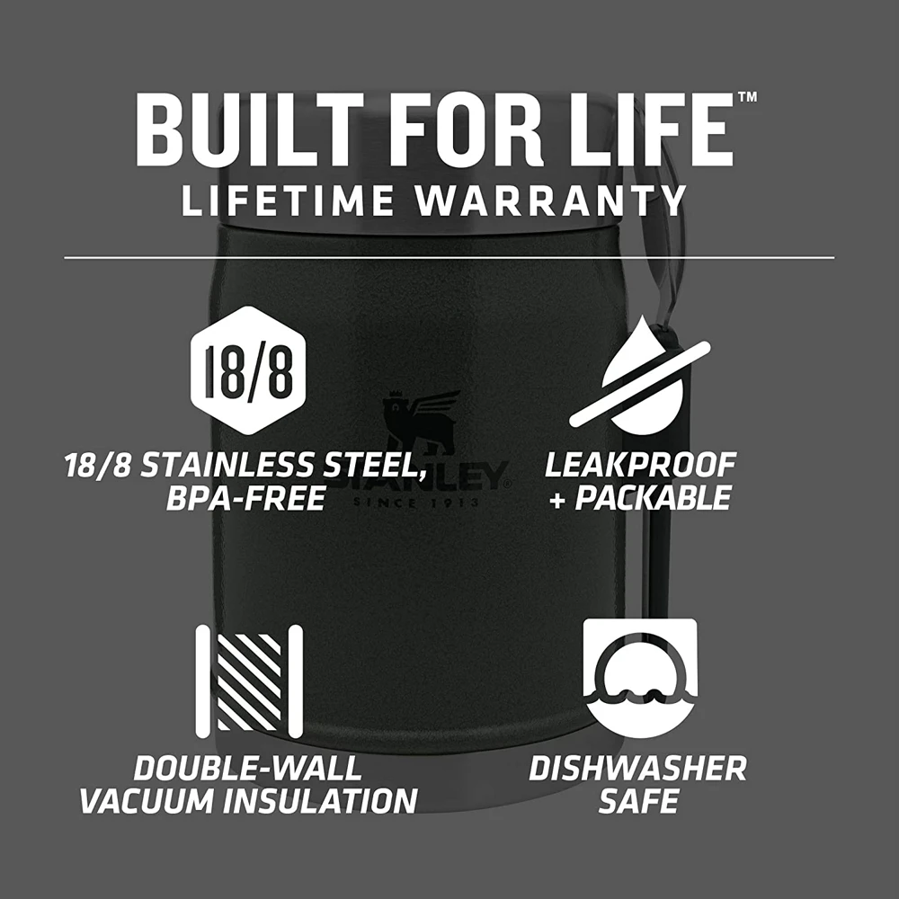This on-the-road or at-the-campsite food jar has all the bells and whistles. Compact—but with plenty of room for your favorite hot or cold recipe. An insulated lid with a pressure-release valve for easy opening. And last but not least, a stainless-steel spork that fits securely into the attached bracket on the side. Bon appetite!